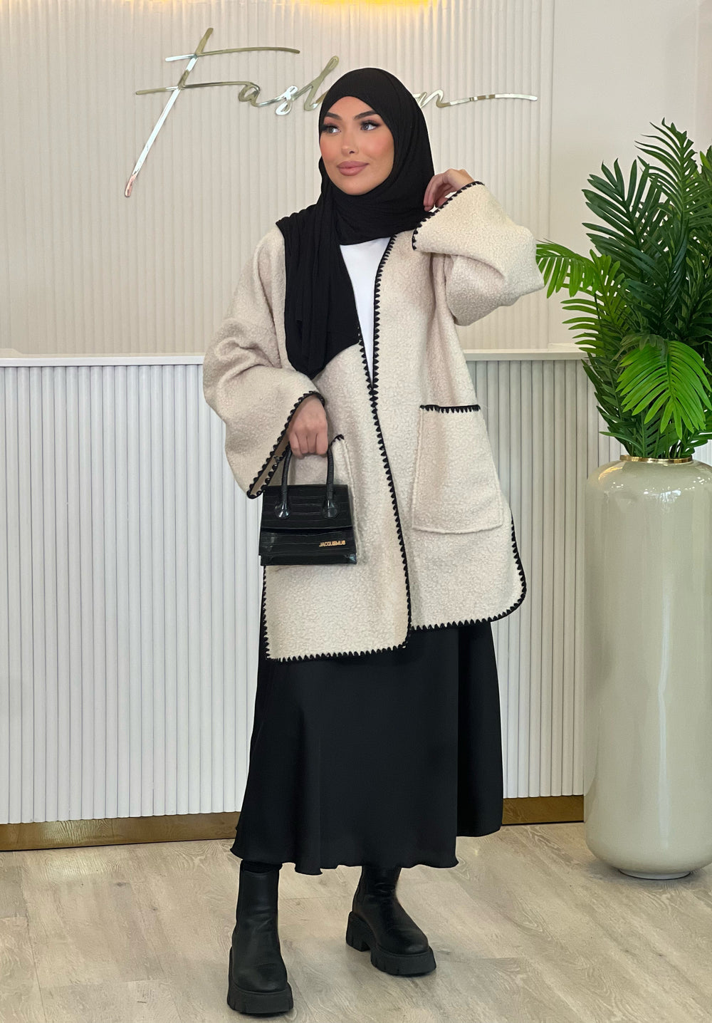Talyaa Premium Jersey Abaya Set in Light Taupe