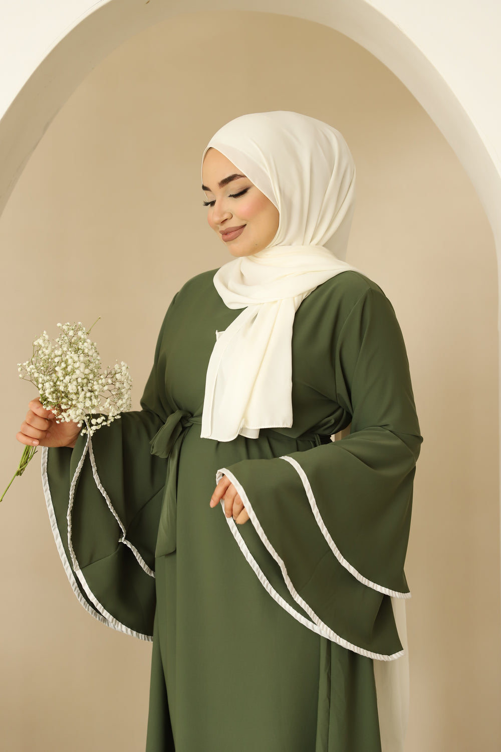Lara Kleid mit Trompetenärmel in Khaki