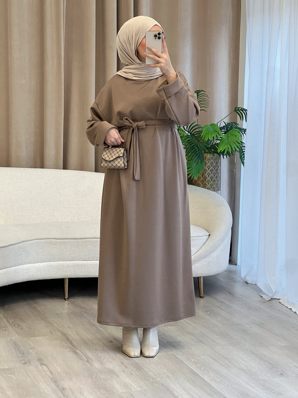 Peony Sweat-Kleid in Taupe