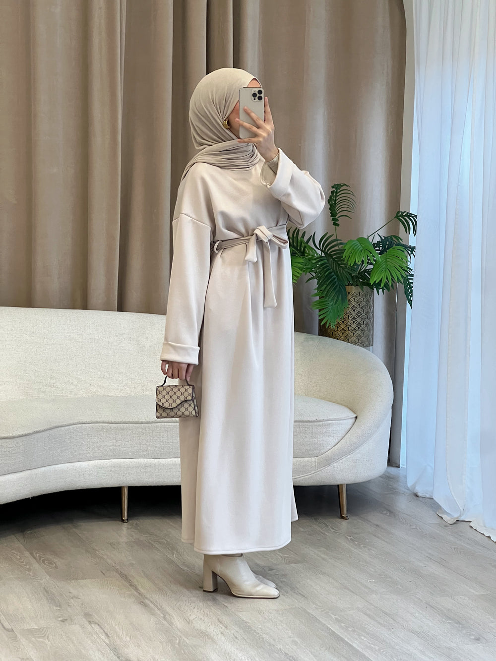 Talyaa Premium Jersey Abaya Set in Beige