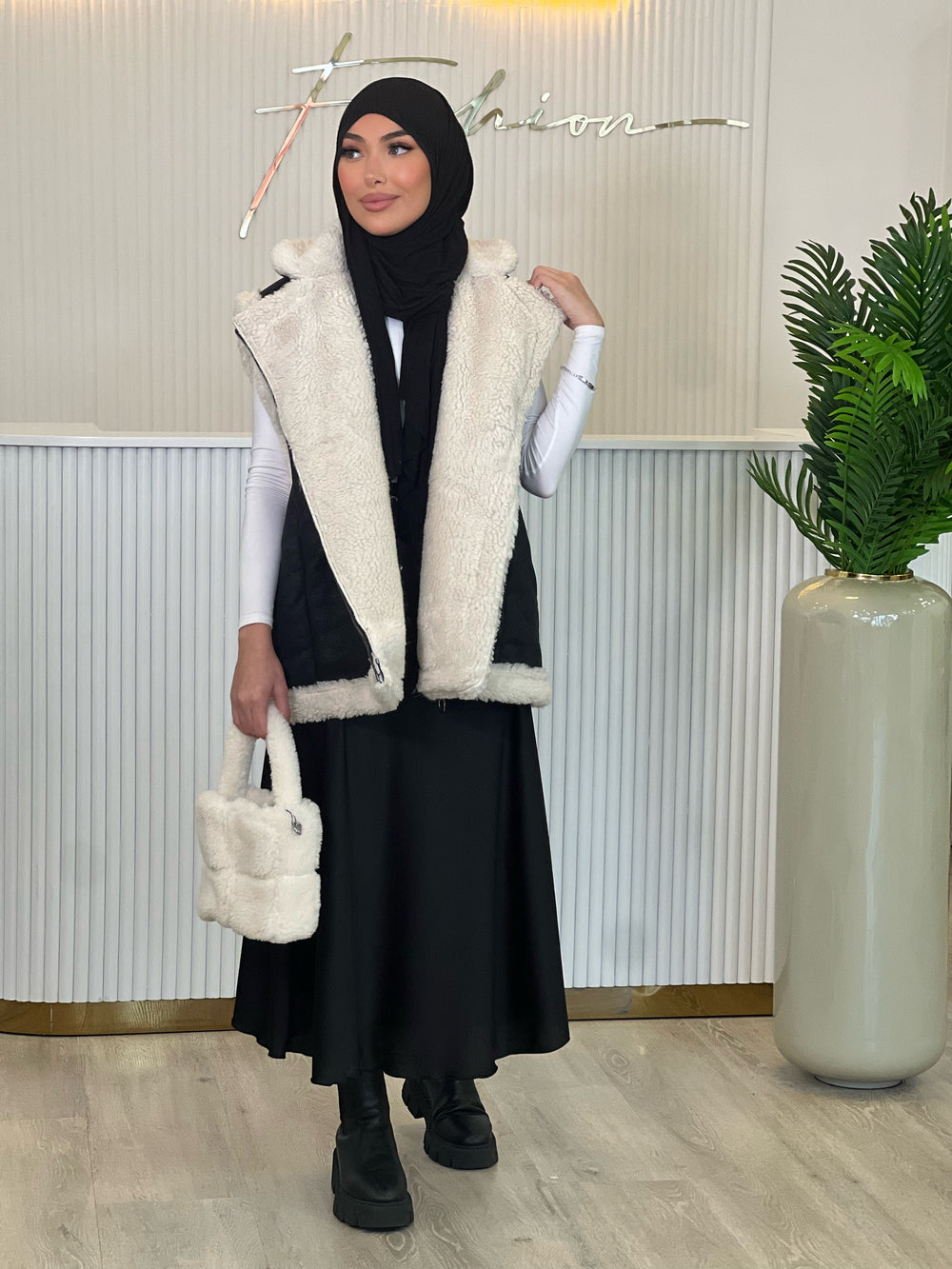 Luisa Fleecegefütterte Wildleder Weste in Schwarz