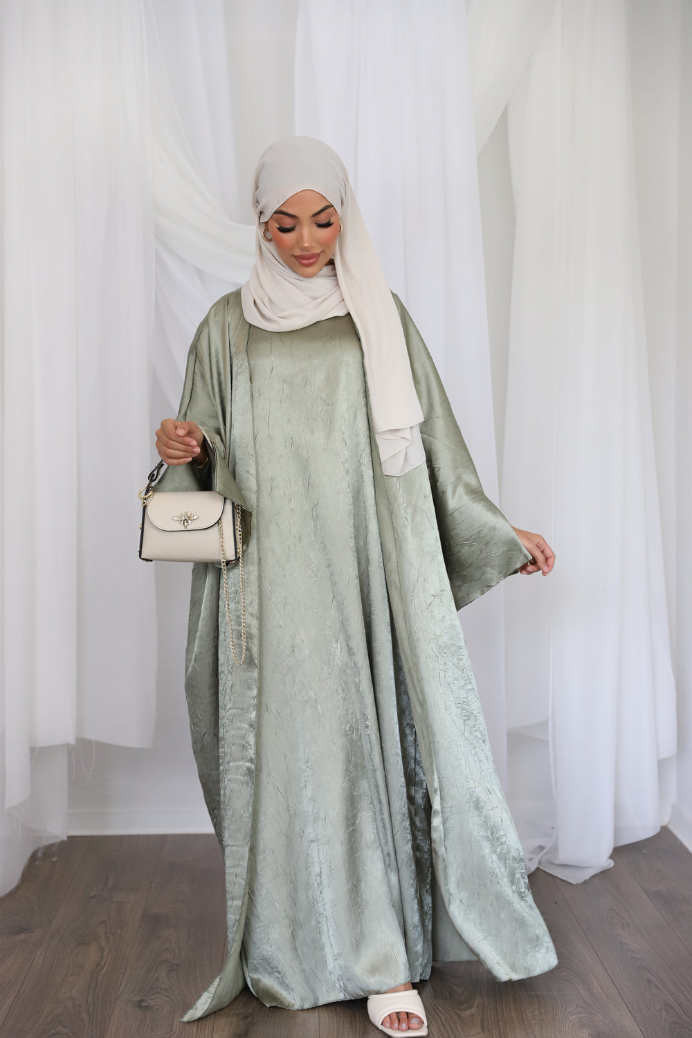 Talyaa Premium Jersey Abaya Set in Light Taupe